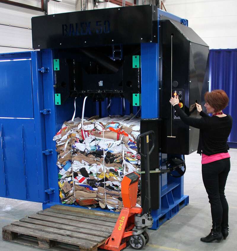 Deals with large volumes of cardboard boxes and plastic films from stock and shipping. Compact balers and baling presses, such as Europress Balex models, save space by creating dense bales for fewer collections.