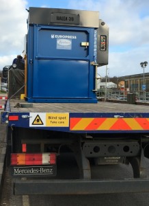 Seen here is a Europress Balex 30 baler being loaded at our site in St Albans for delivery to a customer in East Anglia. Our customer is seen below benefiting from the durable, strong build quality of the Balex baler, that also meets the EN16500 Safety Standards – a 2015 European standard that prescribes high levels of safety for all new vertical balers including the design, manufacture and information for the safe usage of the machinery.